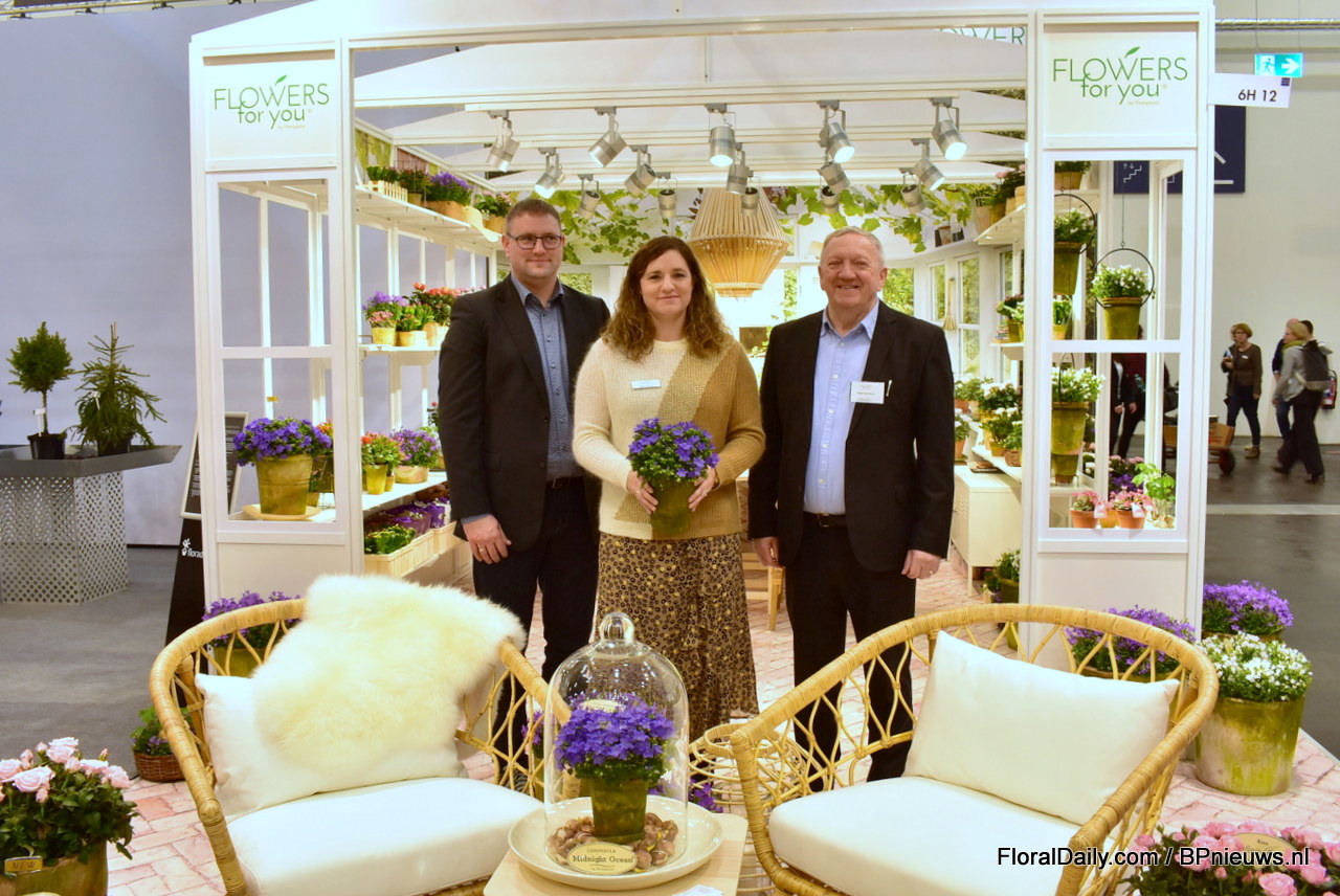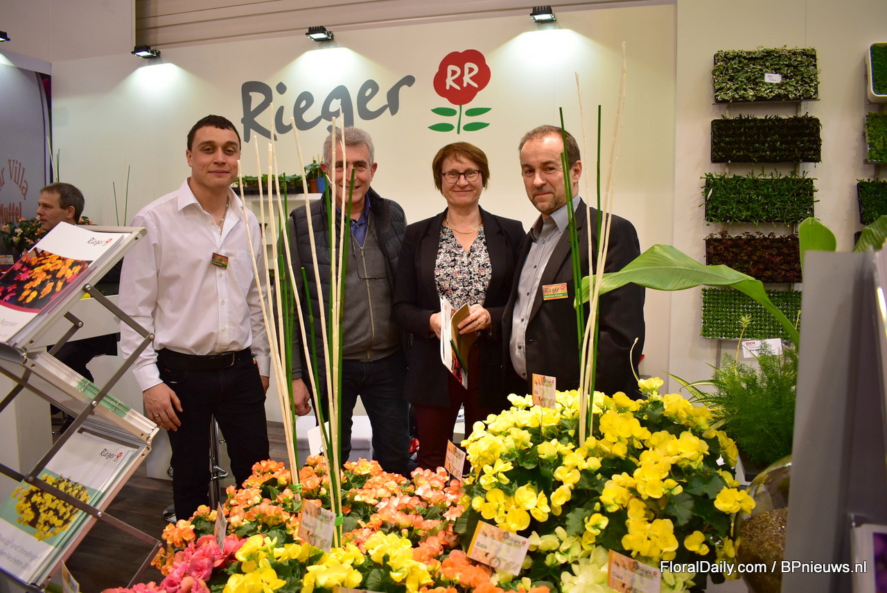 Sirekit Mol, Stephan Faisst, Bas van der Kraan and on the left a new face at Beekenkamp, Marc van Heijningen. In the background, the Dreams collection, under which Beekenkamp markets the begonia varieties. There was also a host of new introductions.