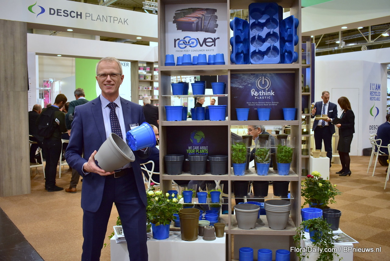 Kees Waqué of Desch Plantpak, presenting their latest product line Recover; an addition to the standard recycled products in the Desch range. They purchase post-consumer plastic waste exclusively to produce Recover.
