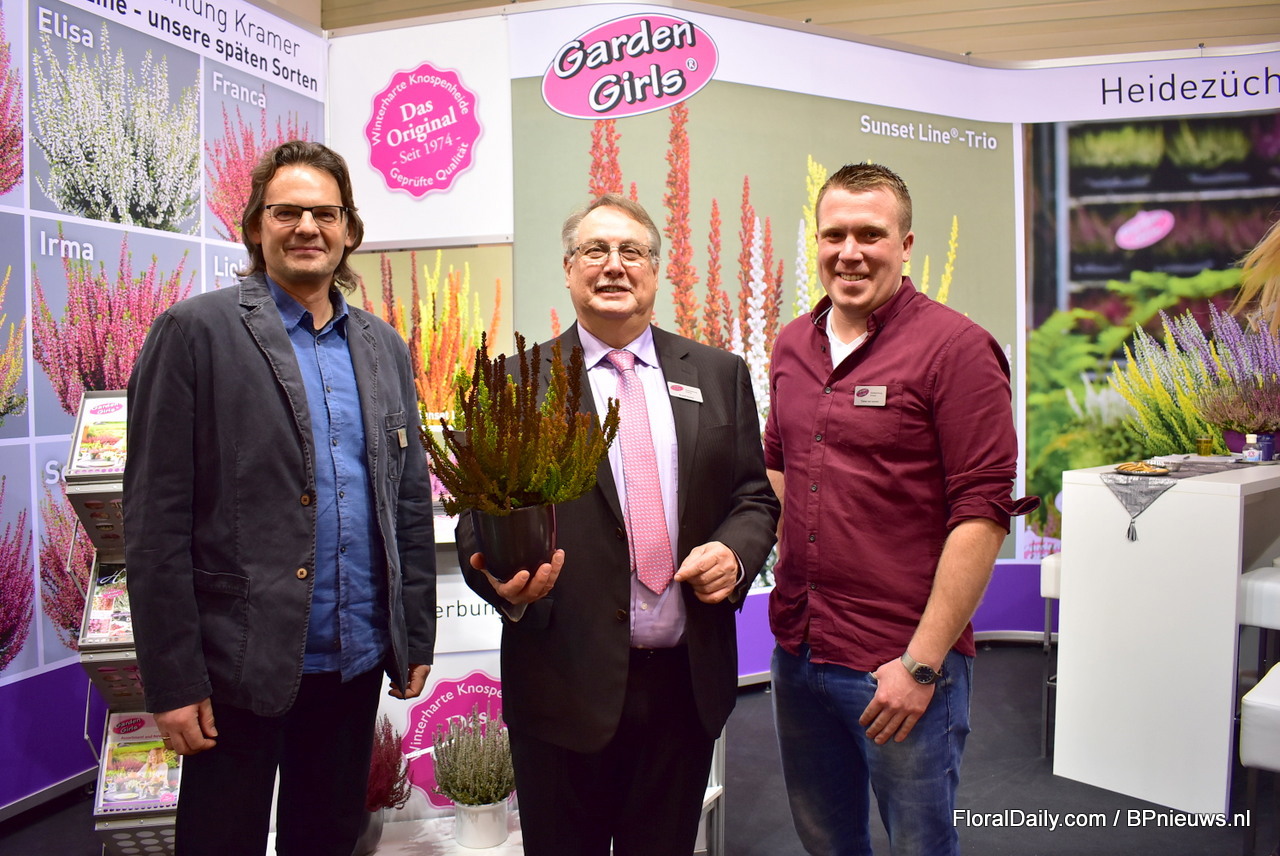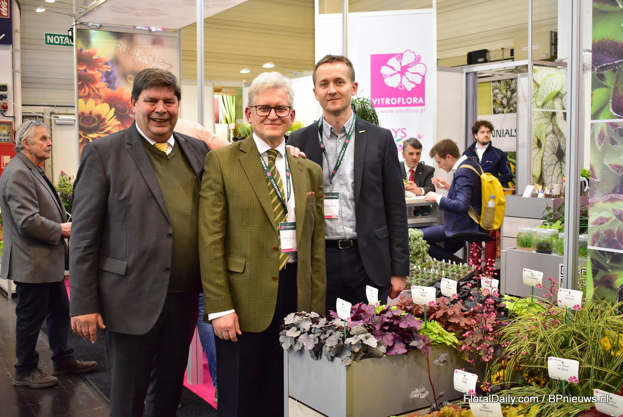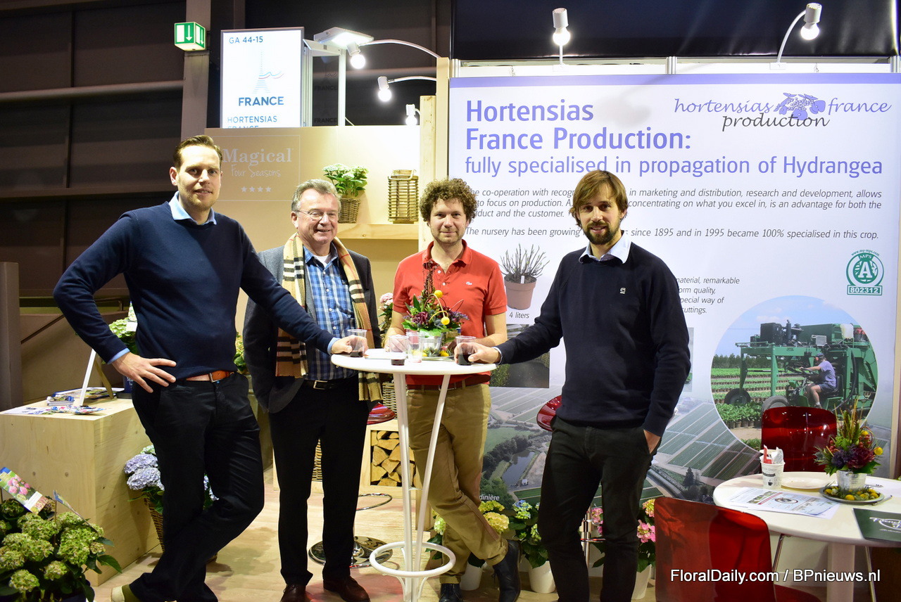 Lionel Chauvin, Didier Boos of HW and Karl Stof of Chauvin present the French Bolero, a new hydrangea bred by several French breeders.