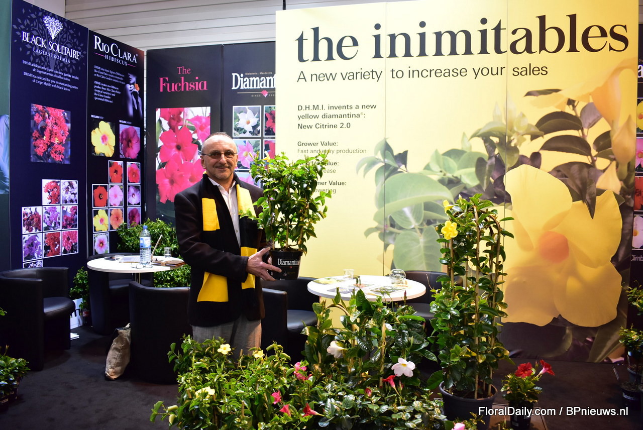 Erick Ciraud of D.H.M.Innovations presenting their new yellow dipladenia Citrine 2.0.
