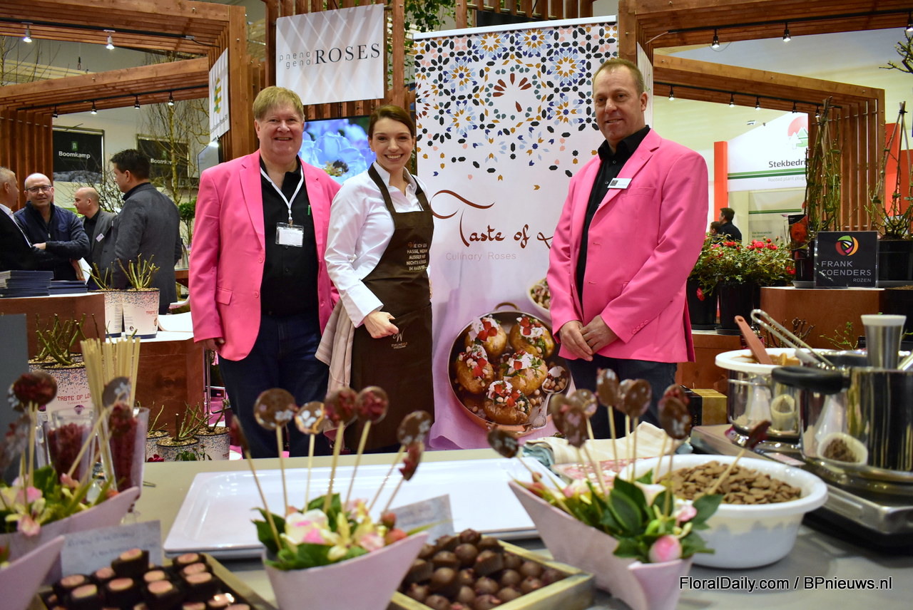 Director & breeder Peter Cox, researcher Biljana Božanićm and former ice cream making world champion Theo Clevers in the Pheno Geno stand. Theo made ice cream with the edible roses, a feat that he’ll hopefully repeat!