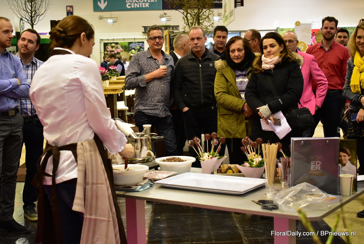 Jeroen Steenbergen of Deliflor presenting their new Sorbet Series. At the IPM they showed three varieties: Banana, Vanilla and Berry