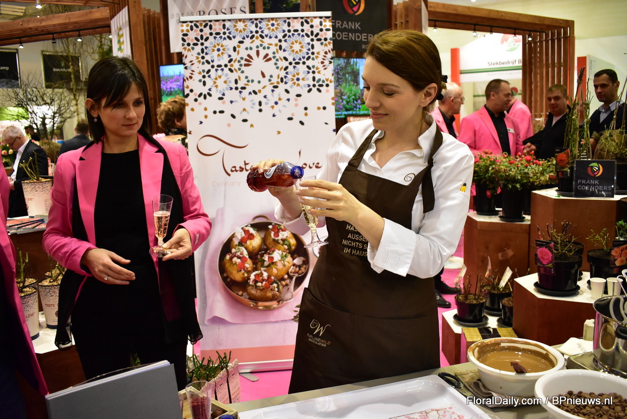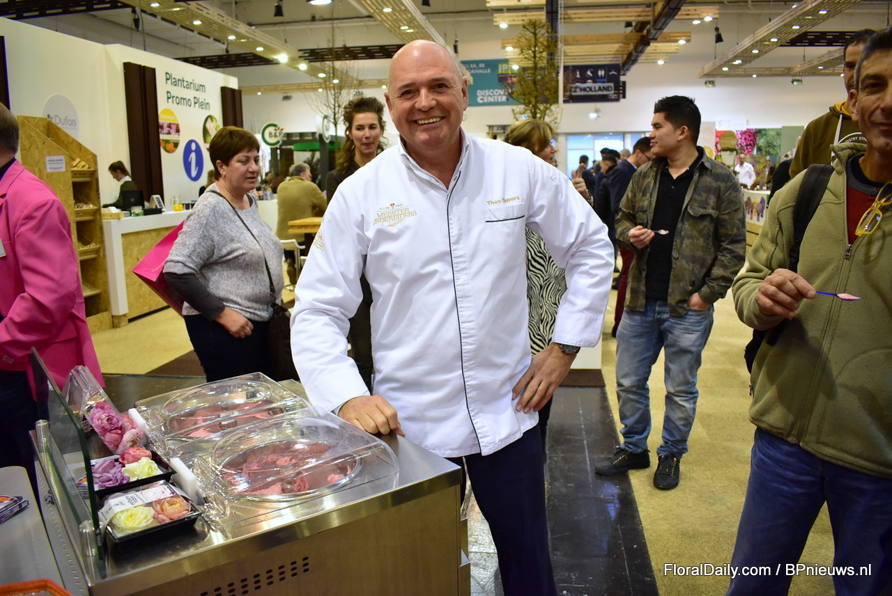 Cook Theo Clevers makes icecream of the edible roses of Pheno Geno.