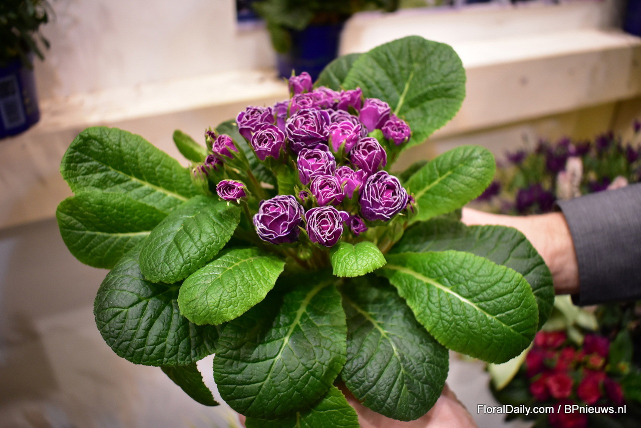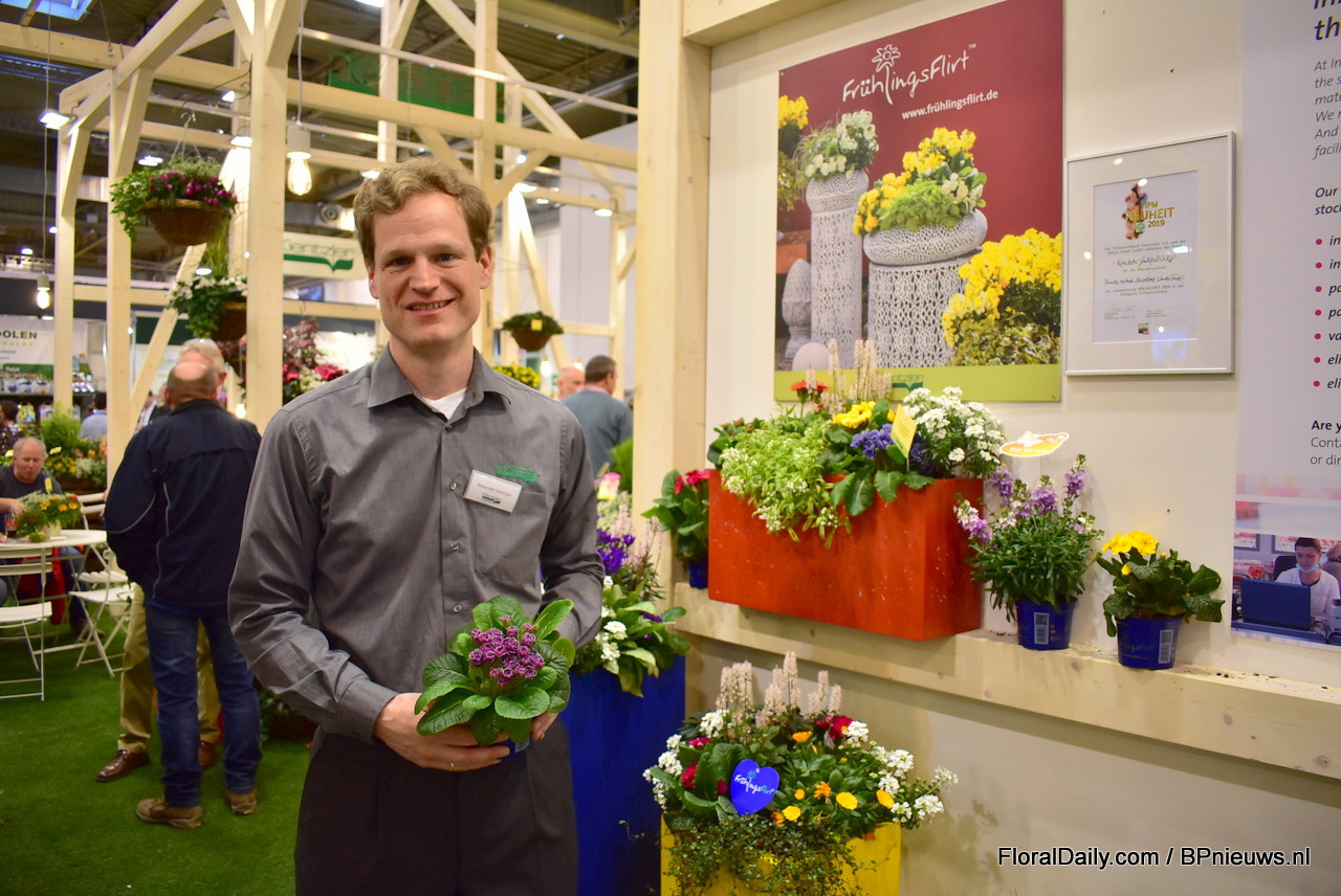 Alexander Kientzler met de Primula hybride Belarina 'Candy Frost'