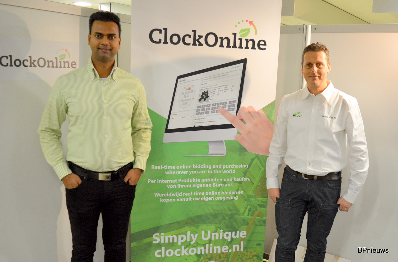Soerinder Somai and Marco Stolze present ClockOnline, with which growers can auction their products from the nursery, in real time, on their own PC or mobile phone, or in the app or browser. It looks promising and the interest is there, the gentlemen explain.