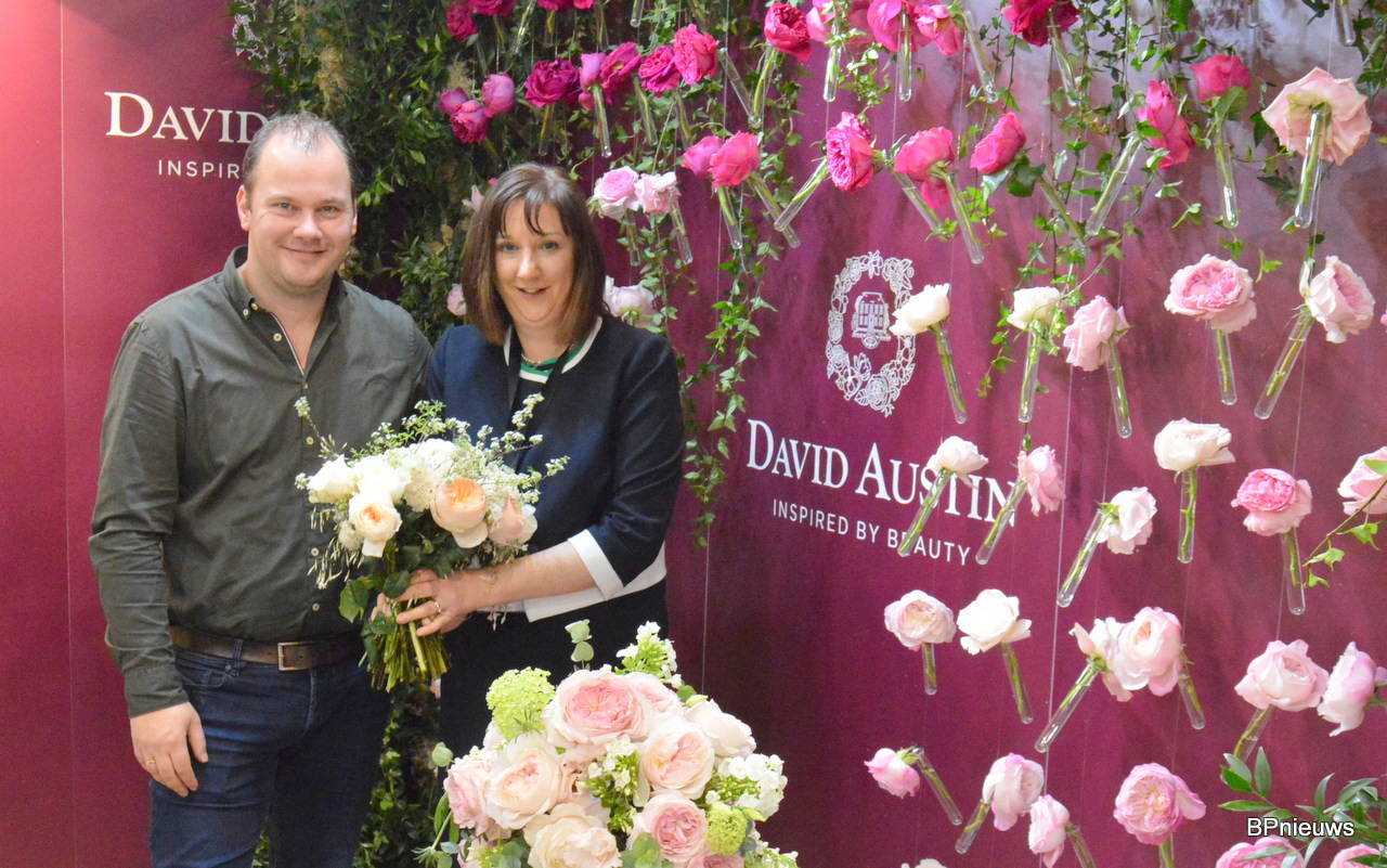 Wouter de Vries, director Parfum Flower Company, with Jo Bird of David Austin. Jo is holding the Juliet rose, David Austin’s most successful product, released in the early 1990s and still going strong in the bridal rose assortment.