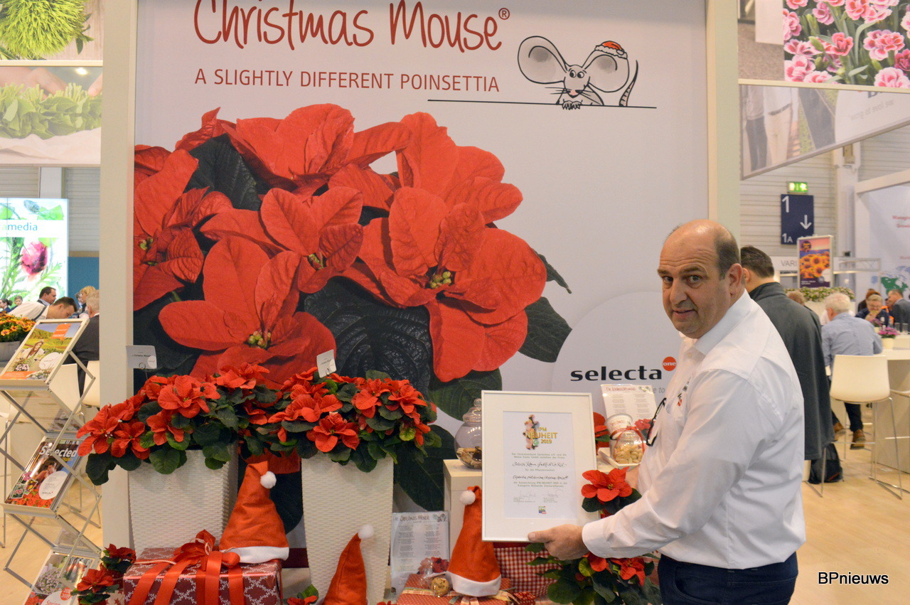 Ton de Bresser of Selecta One, who surprised the IPM’s novelty committe with the Christmas Mouse - the unusual poinsettia with round instead of pointed leaves, grabbing the top award in the category flowering indoor plants.