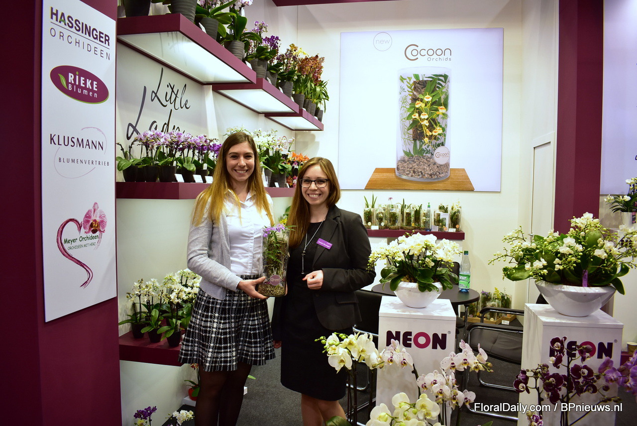 Sisters Iris and Jasmine Hassinger of Hassinger Orchideen presenting a new concept; Cocoon. These are botanical orchids, grown like in natur, on a tree. Due to the glass they are in, thy have their opwn microclimate.