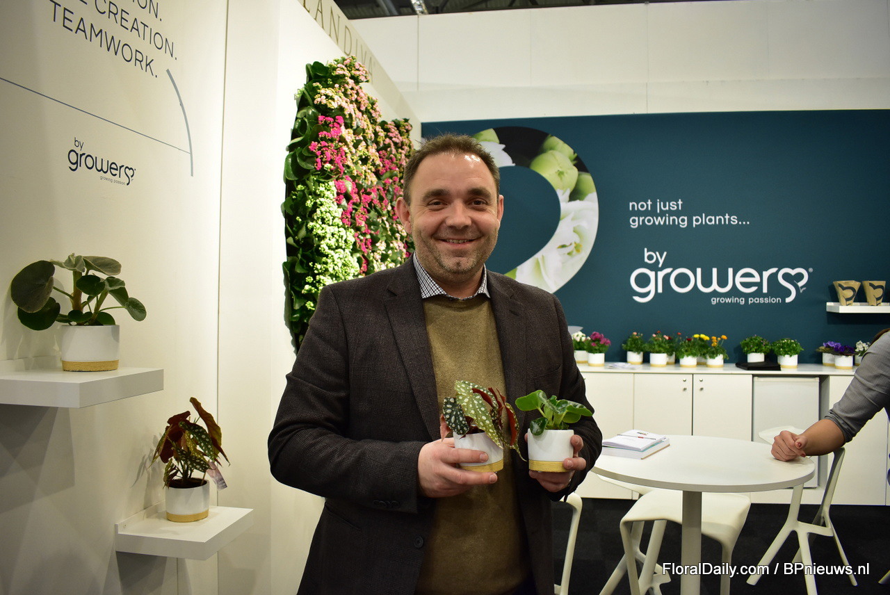 "By growers go green" Nieuw dit jaar zijn de mini's. De Begonia Maculata bijvoorbeeld that Jesper Madsen is holding was introduces as a 12cm last year and they now also have a 6cm version.