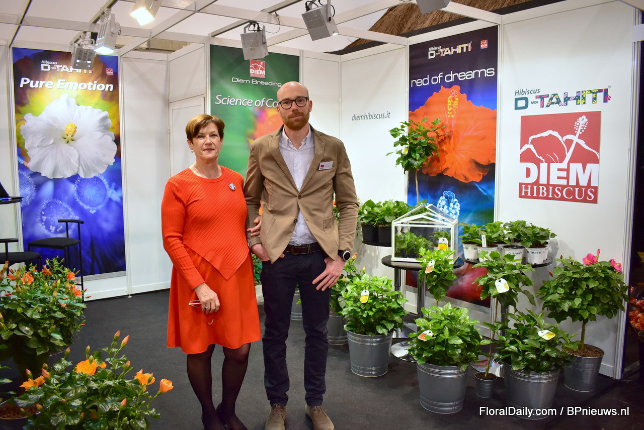 Alexander Bock and Montserrat Josa of Diem Hibiscus. New this year is the white hibiscus variety Pure Emotion (see hibiscus on the left). Special about this flower is that it remains open for 3-4 days.