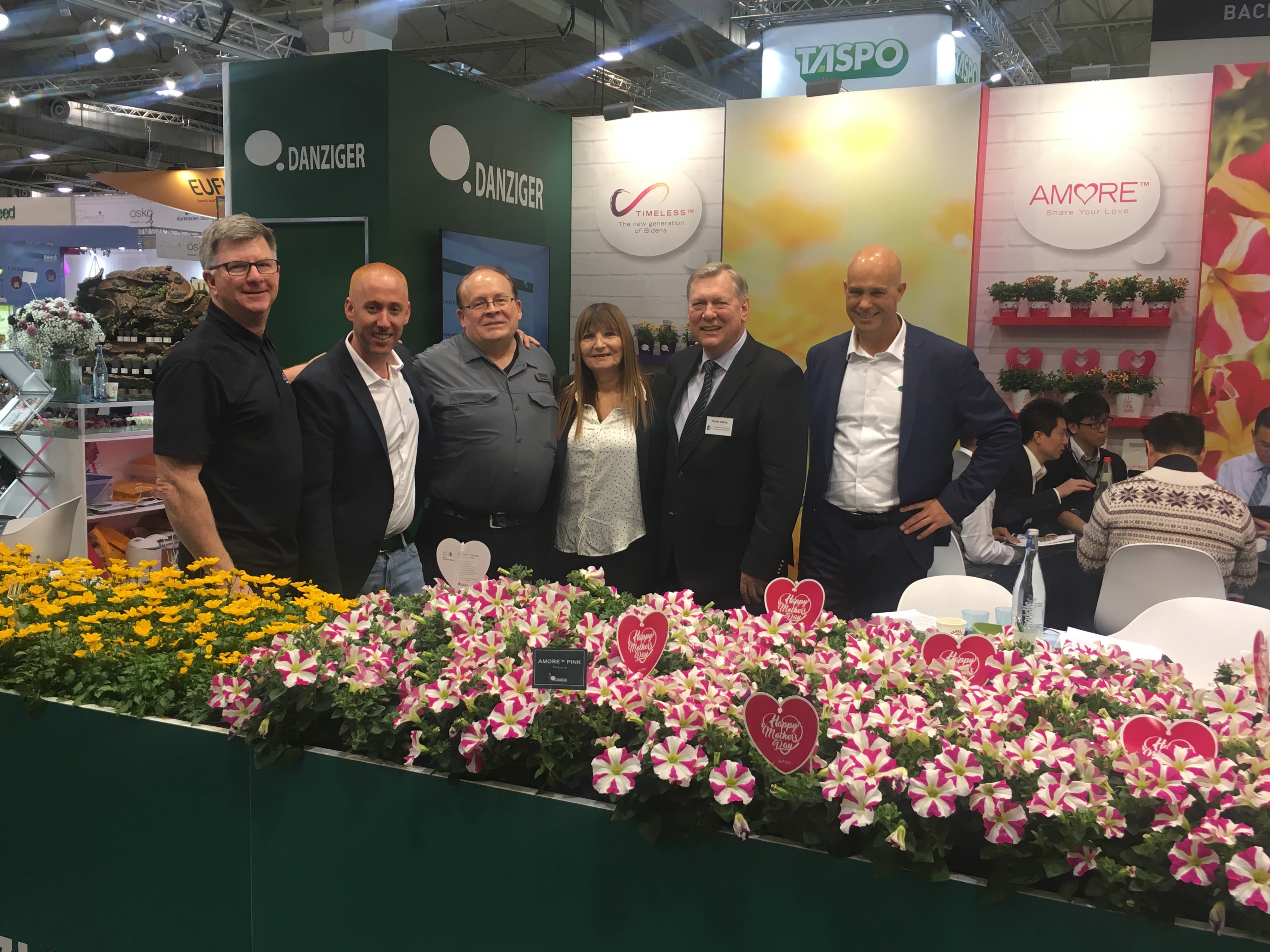 The team of Terra Nova and Danziger at the booth of Danziger. As a part of the new agreement Danziger will become Terra Nova Nurseries’ licensee and producer of vegetative cuttings for Europe, Asia and Africa.