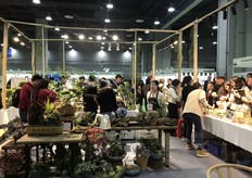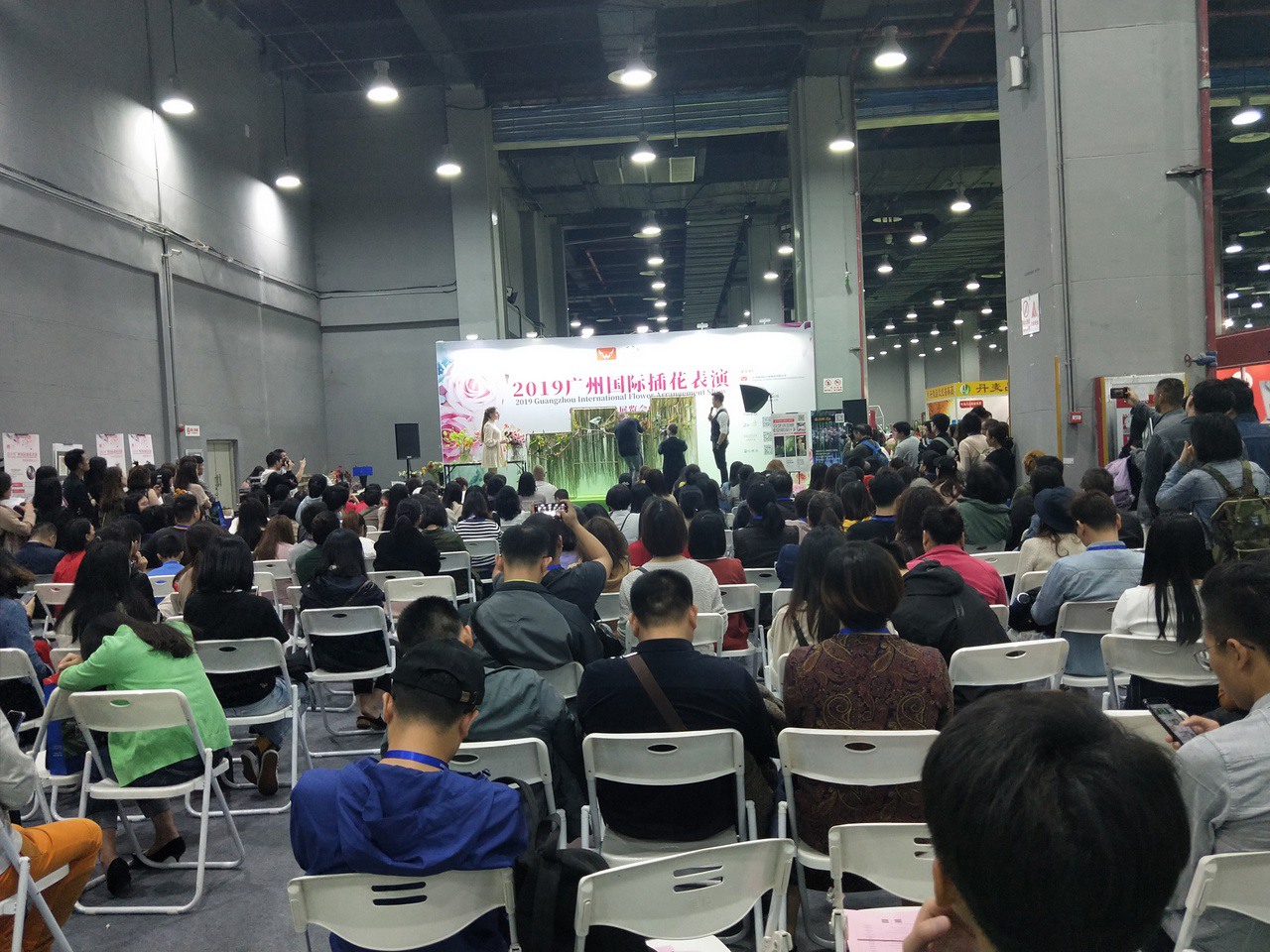 Large audience for the demonstrations at the Guangzhou Int’l Flower Arrangement Show.