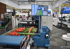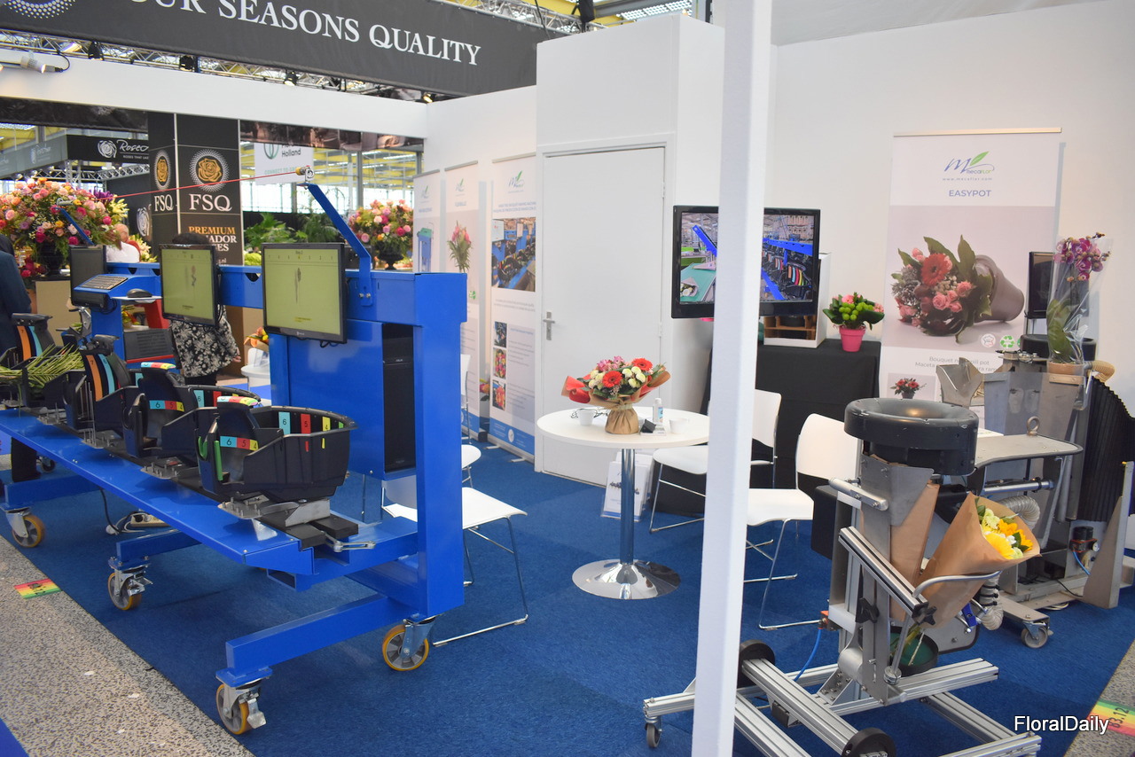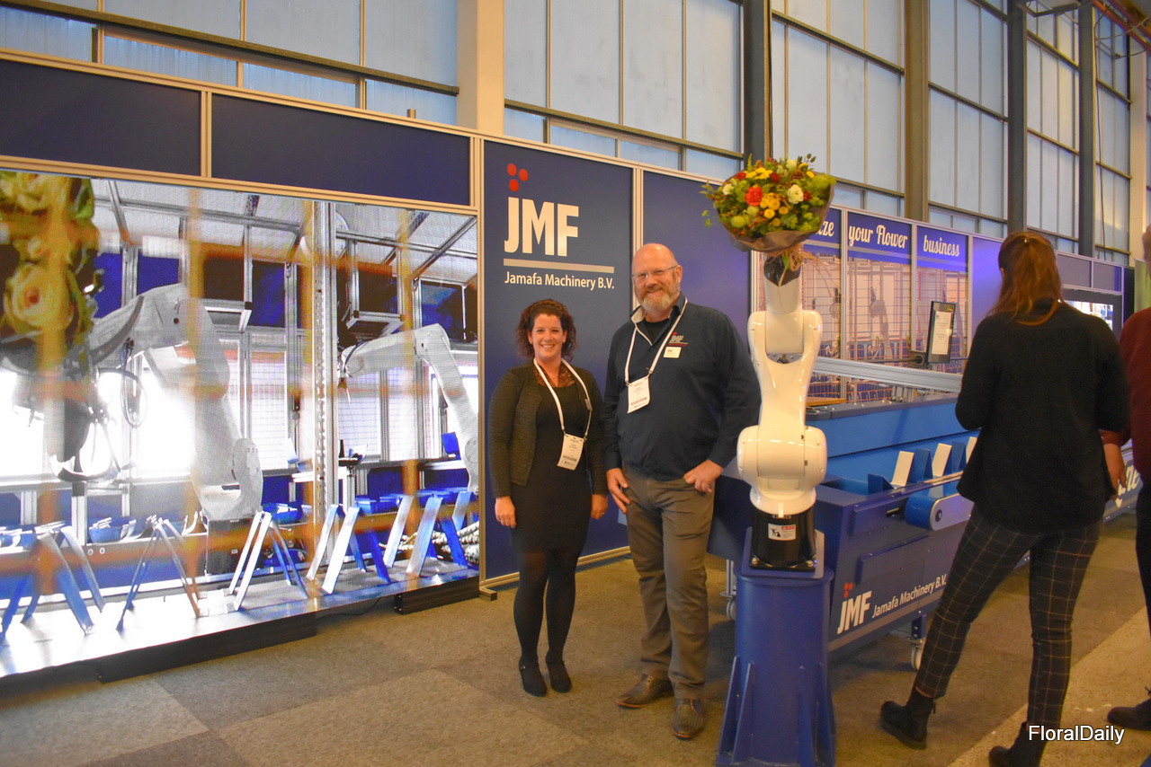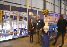 Sandra op de Kamp and Karel van Hattum were busy showing their new Jamafa machinery to visitors. The screens in the background were playing videos of their machines at work.