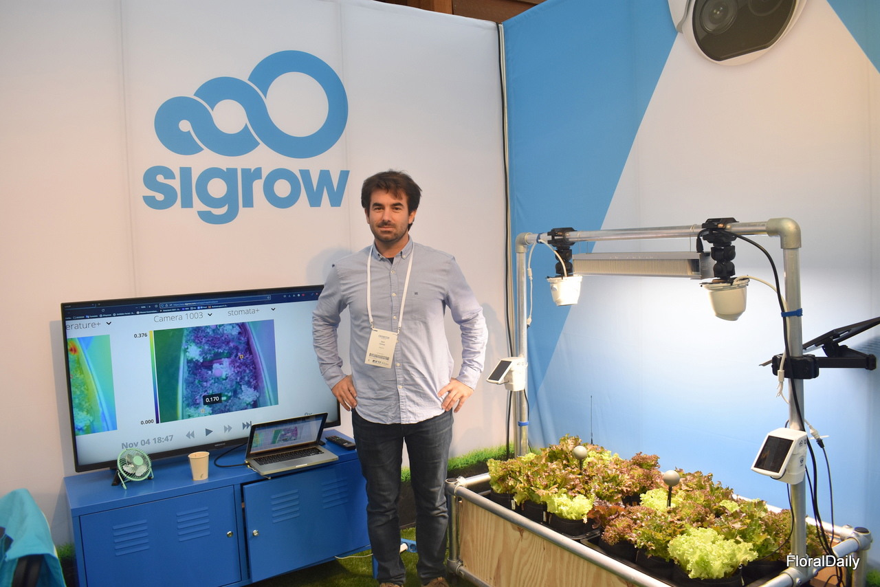 Javier Lomas showing Sigrow's products that can measure whether the stomata of the plants are open, giving you more information on water loss and growth of the plants.