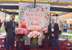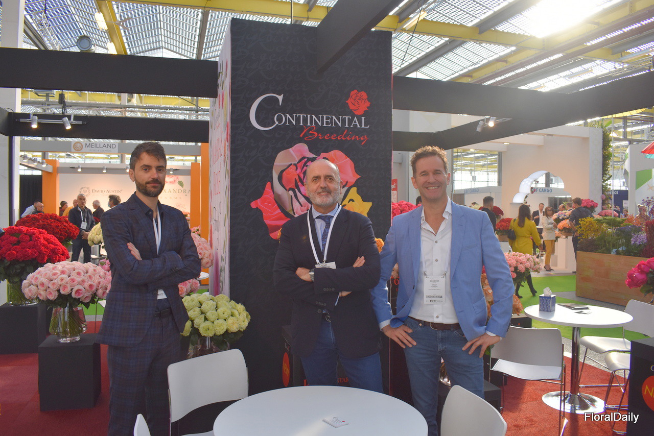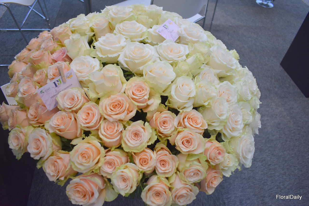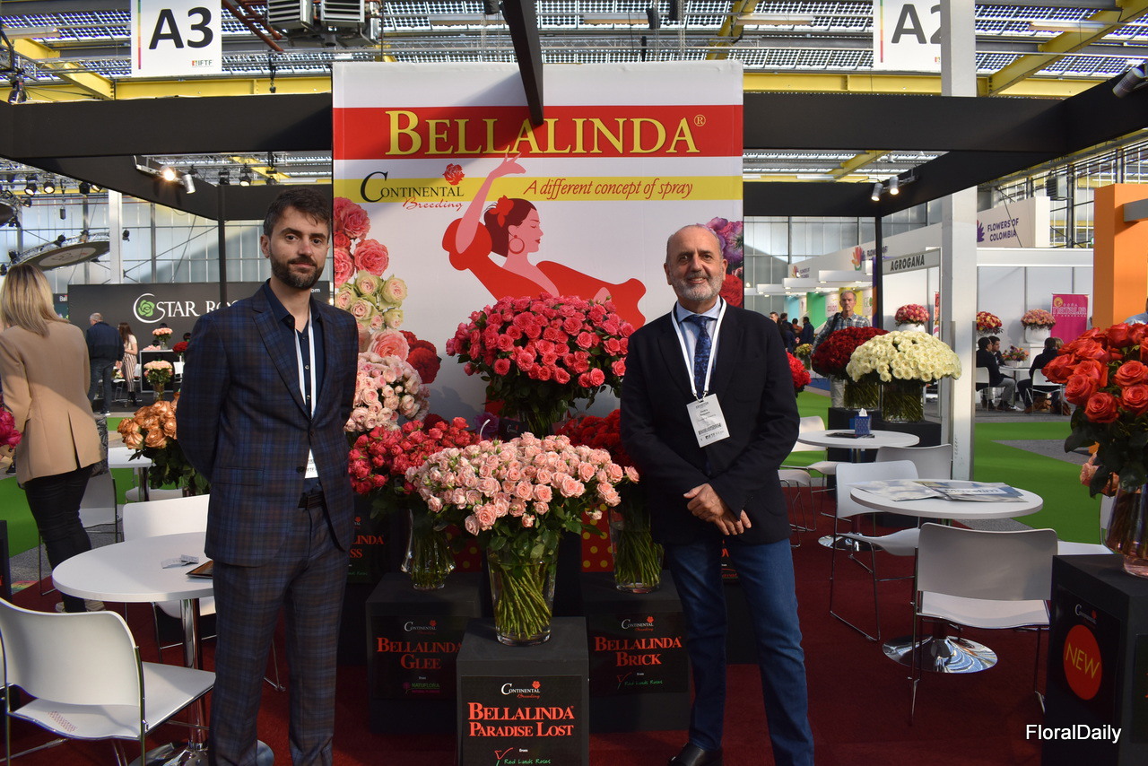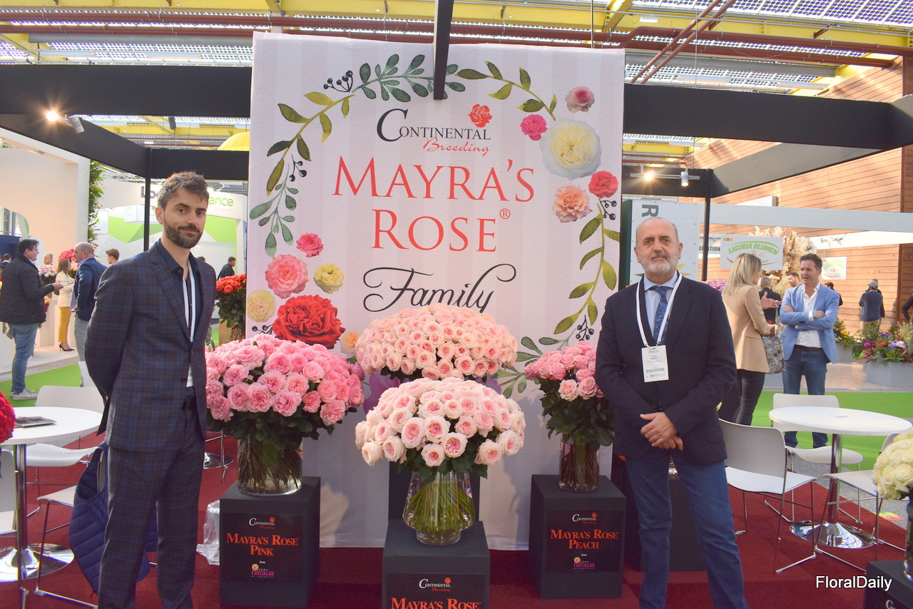 Juan Demian Requena Morales and Pedro Requena Ruiz from Continental Breeding. Their stand had three different sides, showing off three of their lines. Here they are in front of the Bellalinda, their new spray rose line.