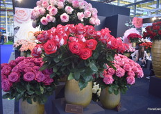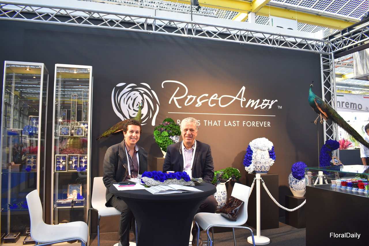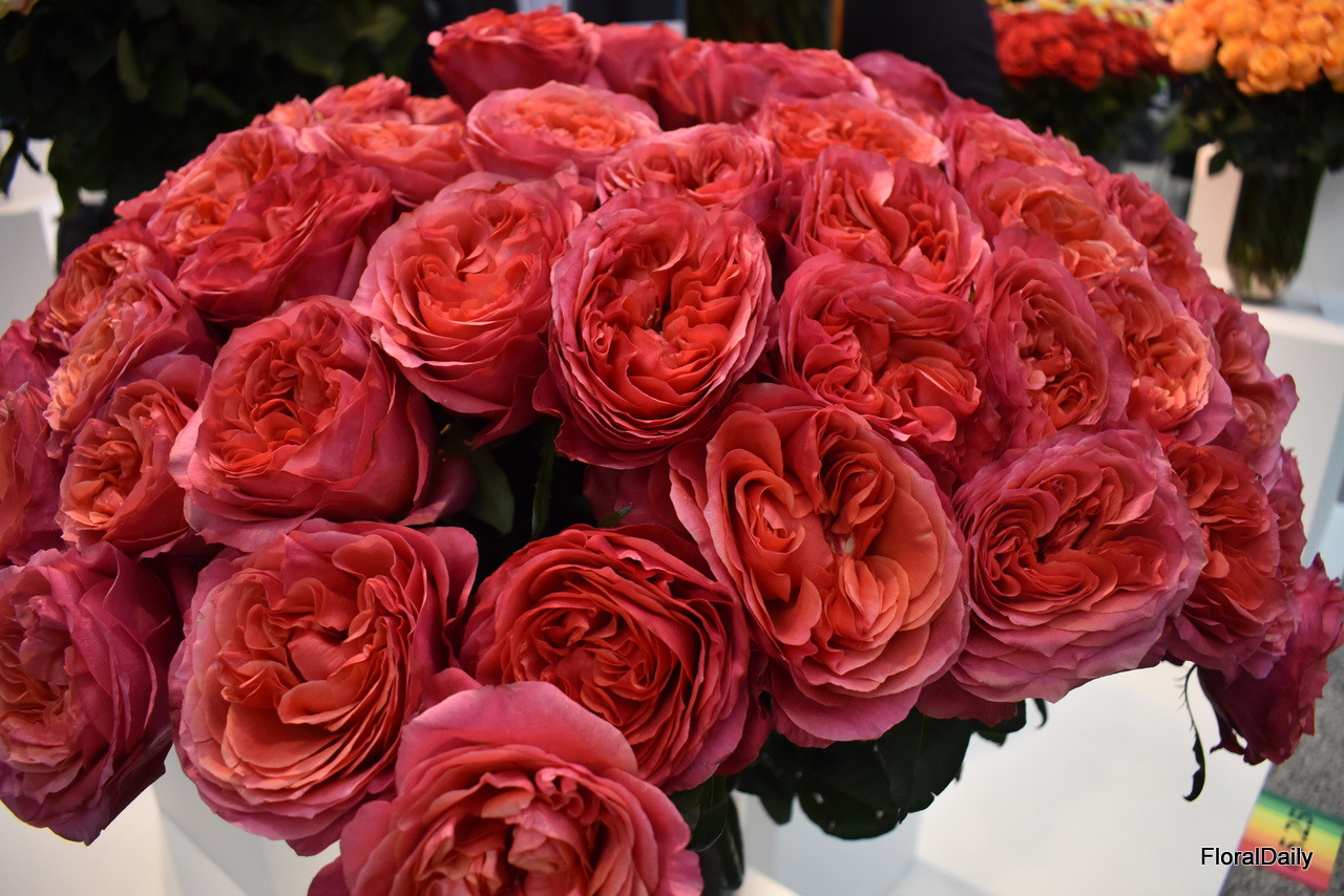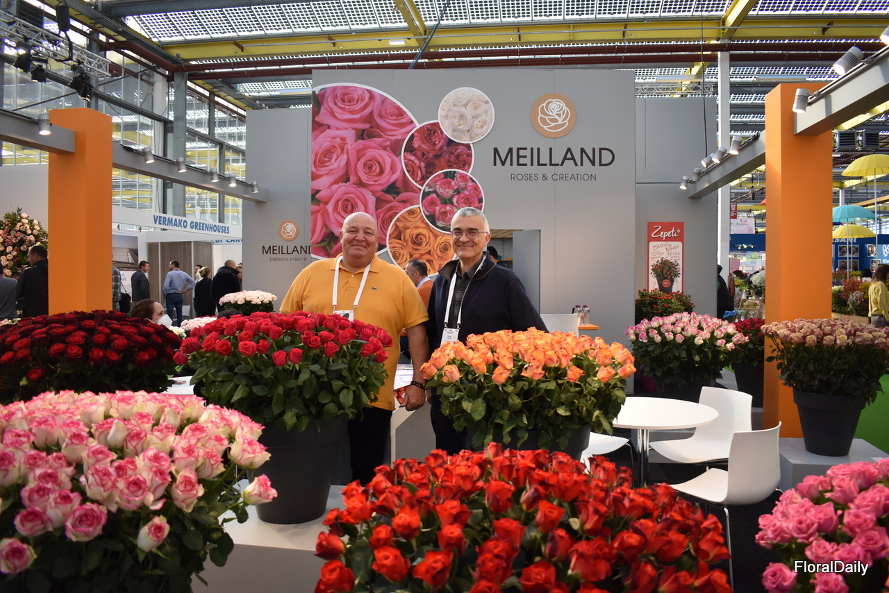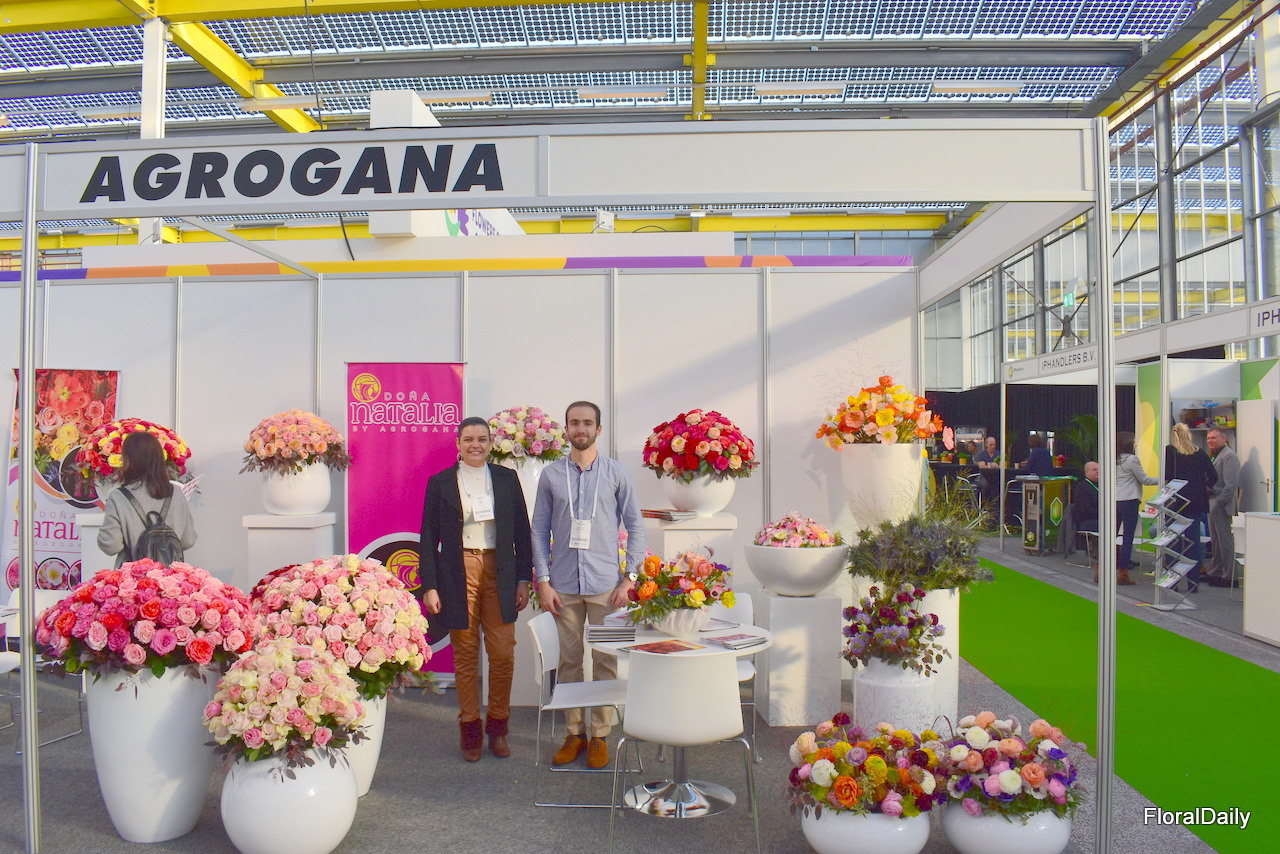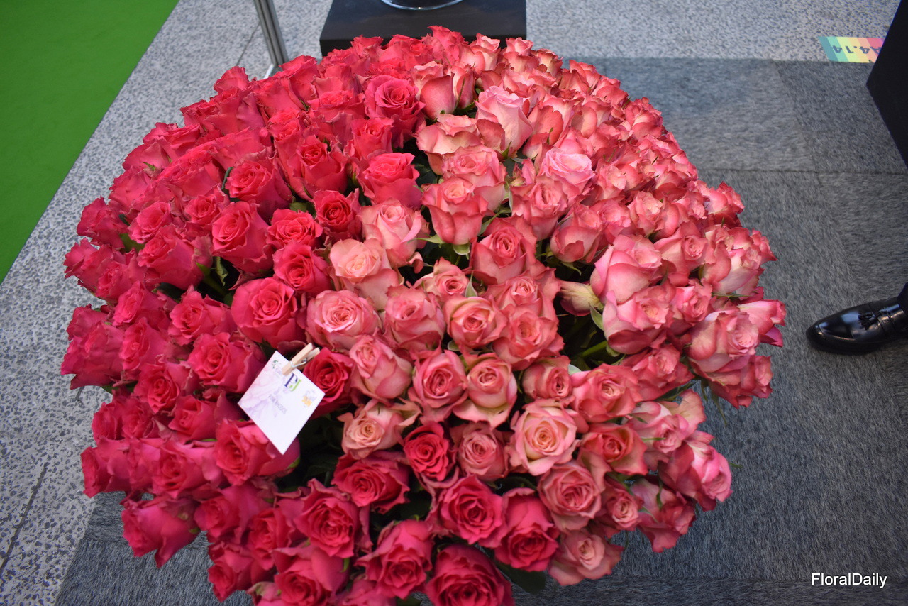Juan Demian Requena Morales and Pedro Requena Ruiz from Continental Breeding. Their stand had three different sides, showing off three of their lines. Here they are in front of the Bellalinda, their new spray rose line.
