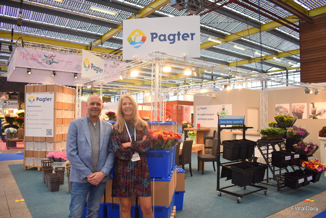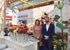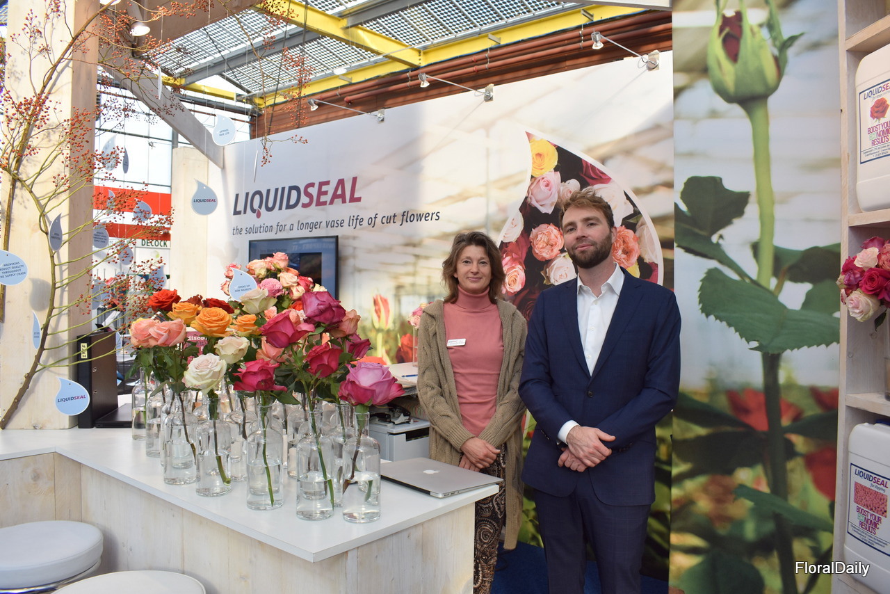 Silvia van Bodegom and Ernst van den Berg of Liquidseal. The company was presenting their soon-to-be launched product, which not only extends the vase life but also adds fragrance to the flower.