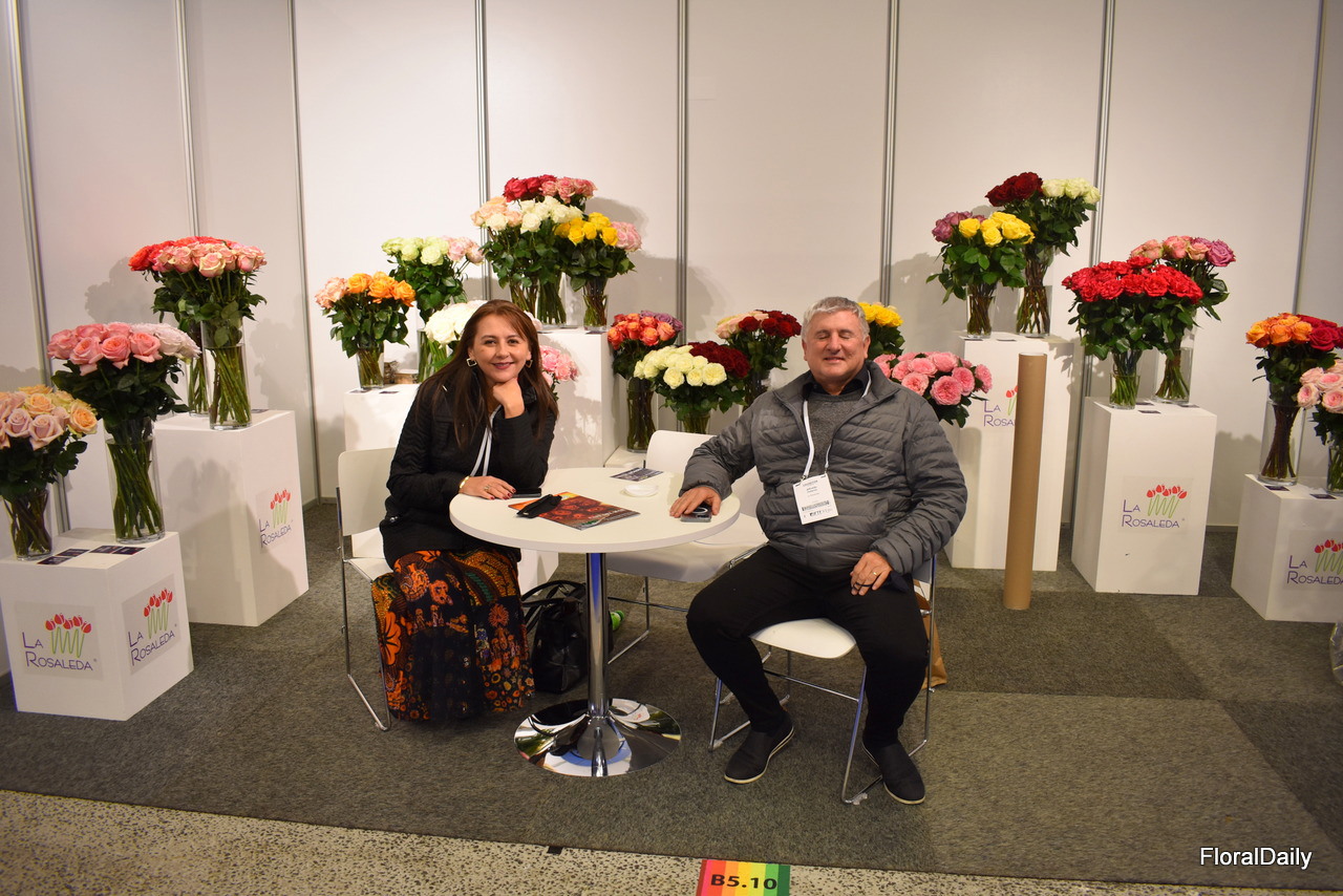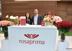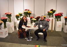 Begona Jimenez and Eduardo Letort M. from the Ecuadorian growers Hoja Verde, presenting their high altitude roses.