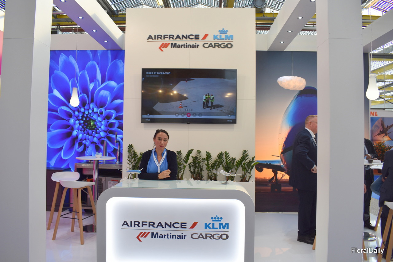 Alicia Robert-Mora at the AirFrance/KLM/MartinAir Cargo stand, ready to talk to visitors about the current state of logistics. She mentioned that, luckily, things are improving as more and more flights are happening.