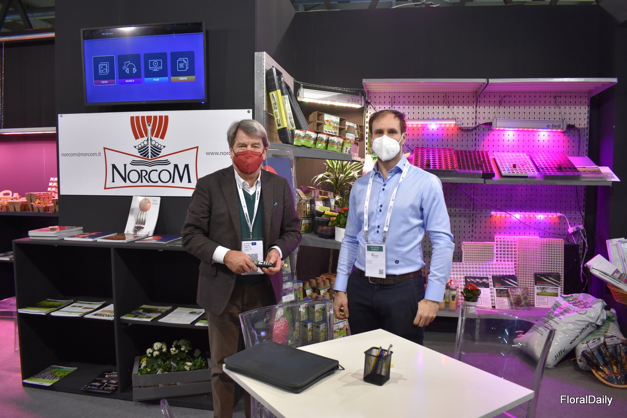 Dr. Einar Nilssen Jr and Dr. Luca Giana at the Norcom booth, where they were also showing products of C-Led, Jiffy, and Valoya, amongst others.