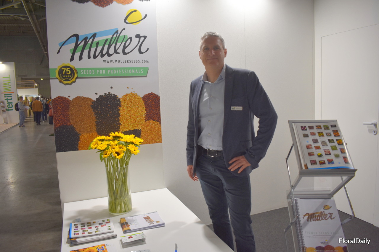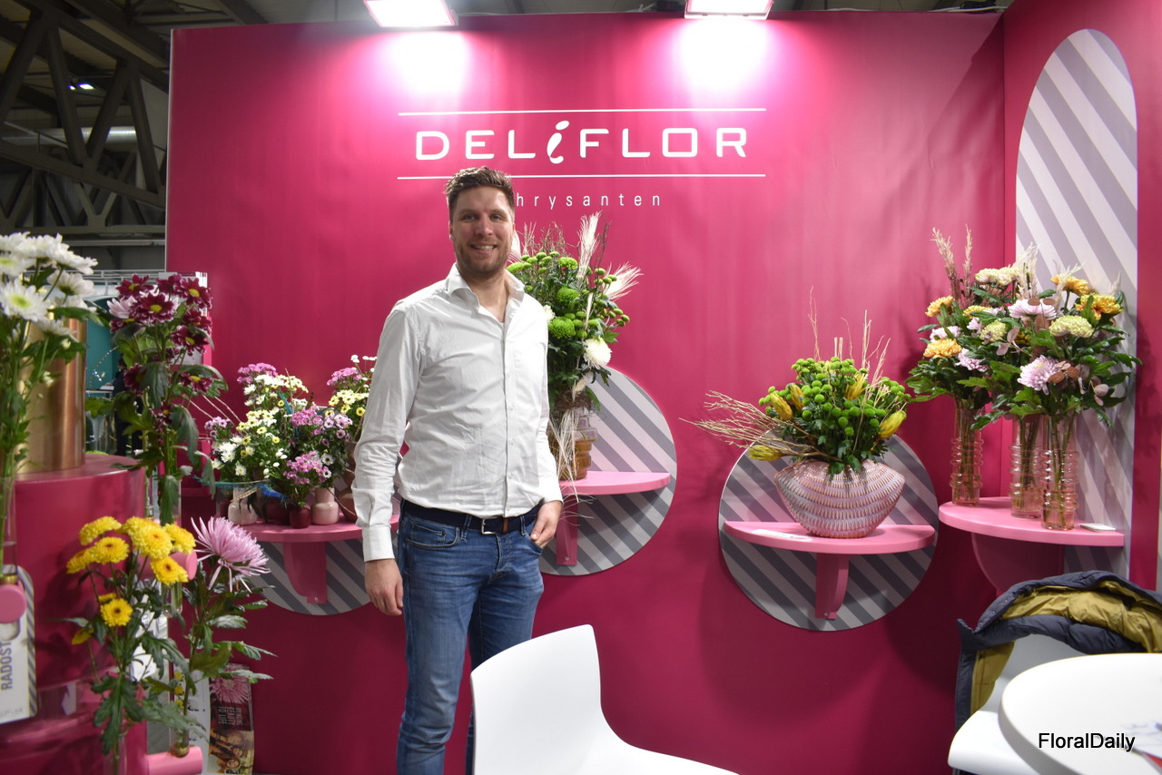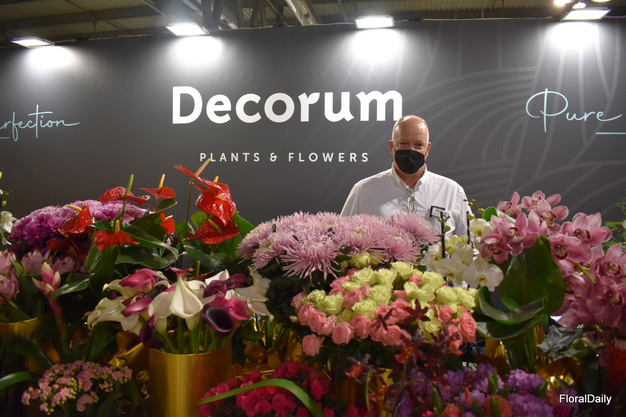 Harold Hartog behind lots of beautiful flowers on display at the Decorum booth.