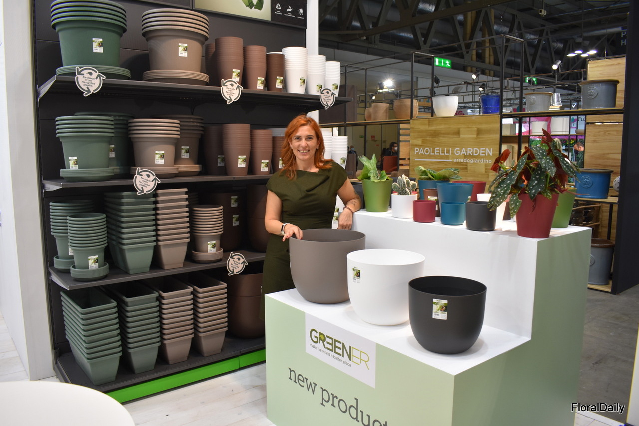 Valeria Dalla Riva showing off Euro3plast's new pots in their Greener collection, which are made entirely of recycled plastic.